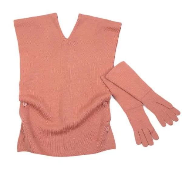 【SALE】プランテーションPlantation ウールプルオーバーベスト・手袋 サーモンピンクM位