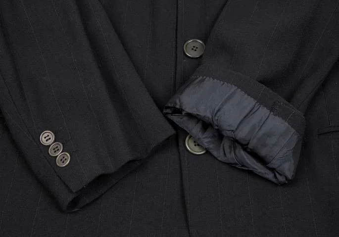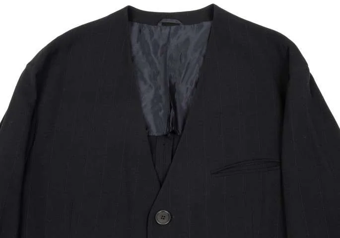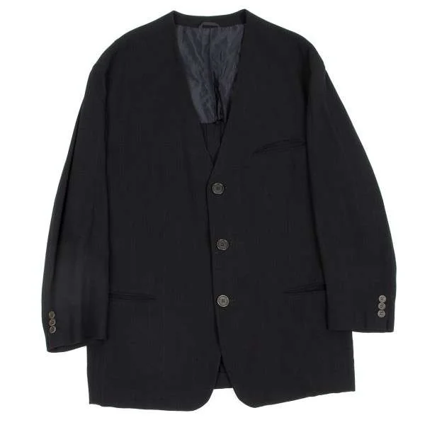 ジョルジオ アルマーニGIORGIO ARMANI BORGO21 ウールストライプノーカラージャケット 紺52