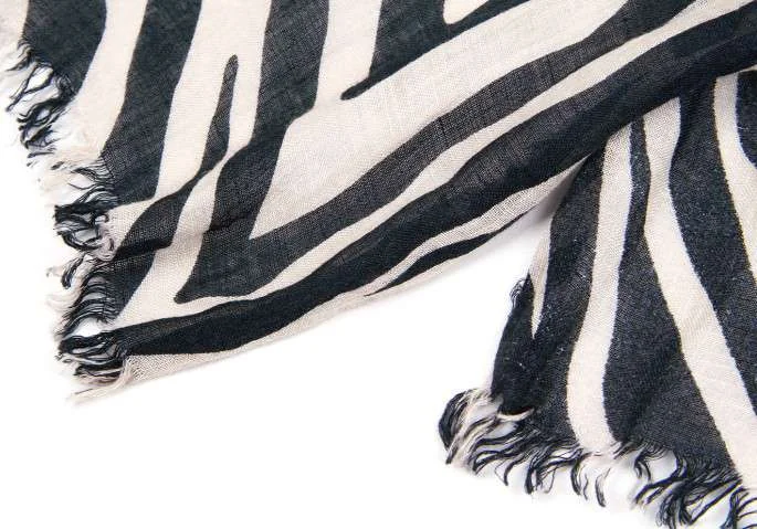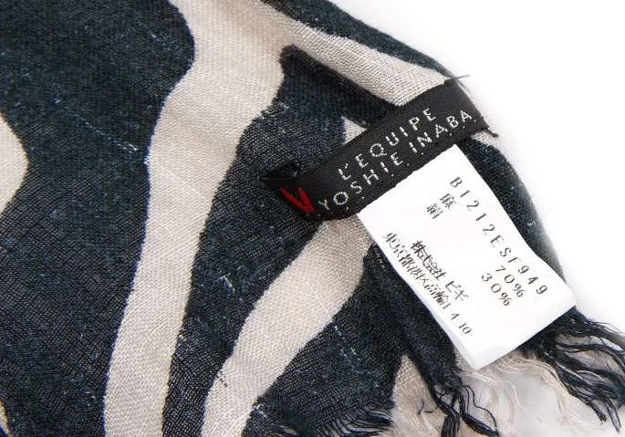 レキップヨシエイナバL'EQUIPE yoshie inaba リネンシルクゼブラ柄ストール 黒ベージュ