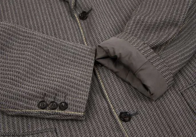 品質タグなし。襟裏に薄汚れ、ポケット裏にシミがあります(画像参照)。その他は目立ったシミ、汚れ、ほつれ等なくいい状態です。クリーニング済み