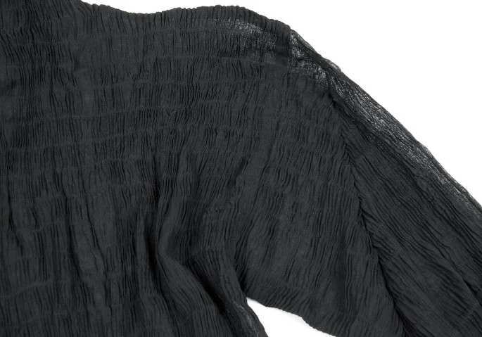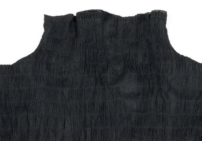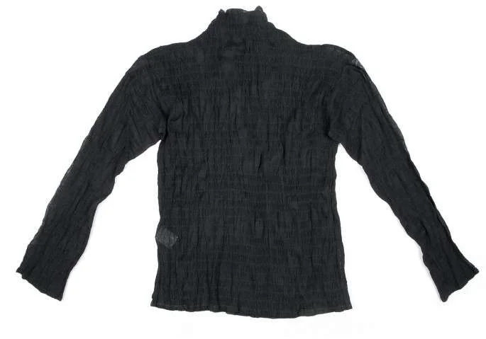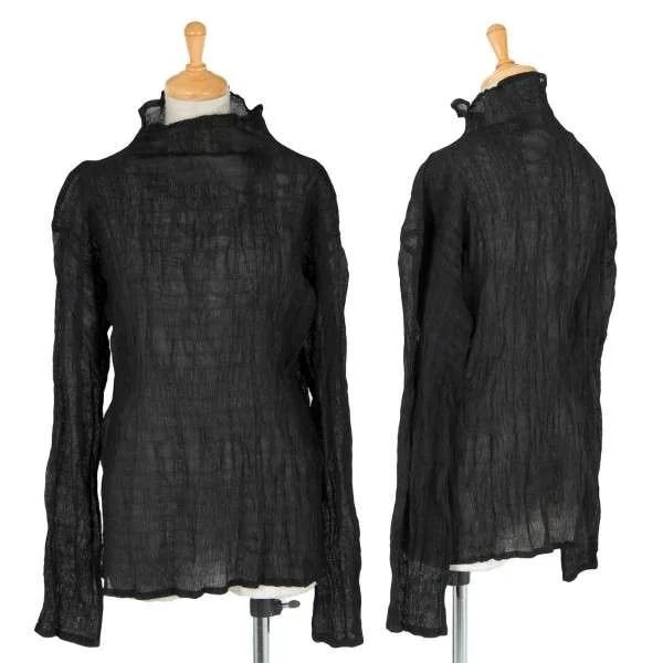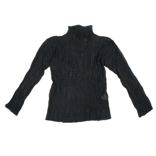【SALE】イッセイミヤケISSEY MIYAKEシワプリーツデザインハイネックシースルートップス 黒M