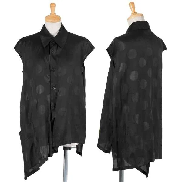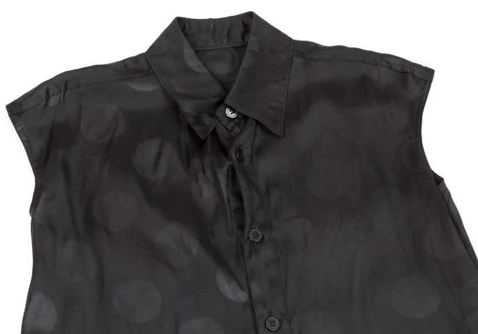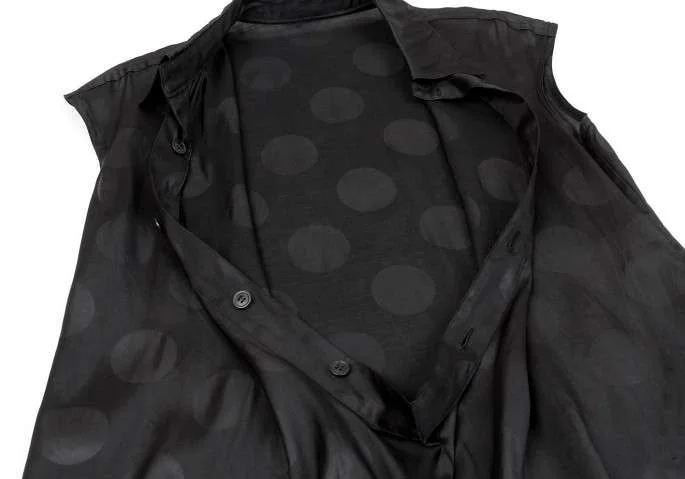ワイズY’s レーヨンキュプラドット柄ノースリーブプルオーバーシャツ 黒1