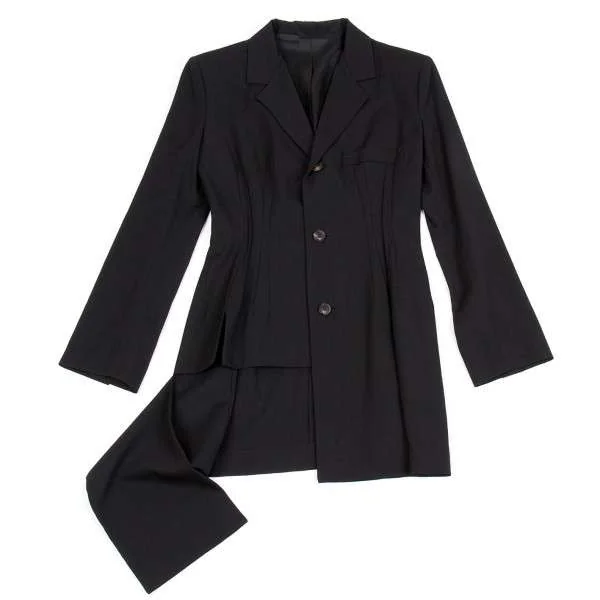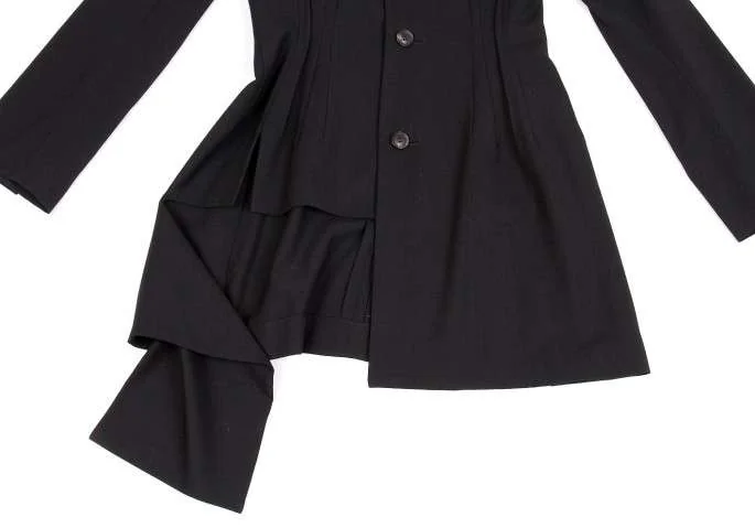 ヨウジヤマモト ファムyohji yamamoto FEMME アシメトリーウールギャバダーツジャケット 黒XS