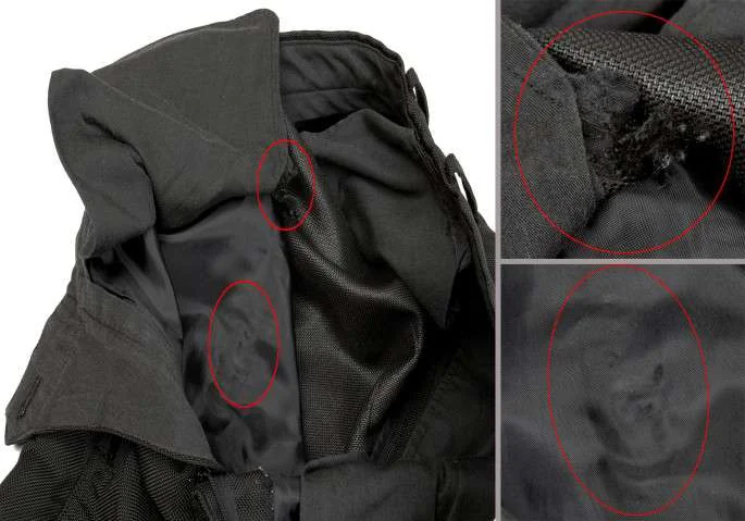 ウエスト裏に薄汚れ、裏地に裂け、裾にダメージがあります(画像参照)。その他は目立ったシミ、汚れ、ほつれ等ありません。クリーニング済み