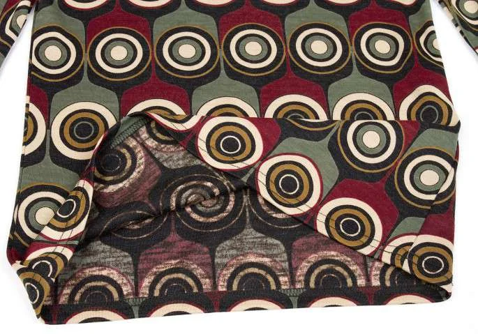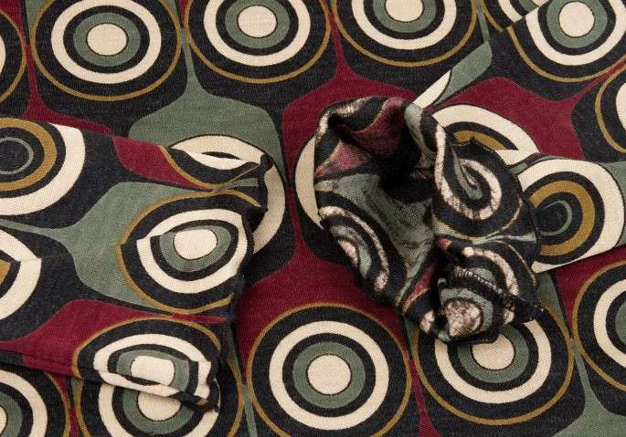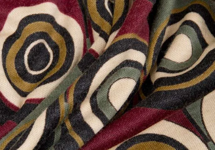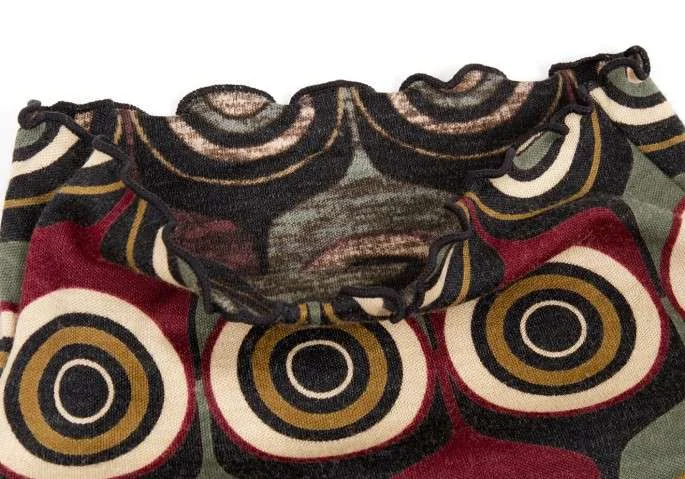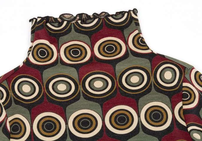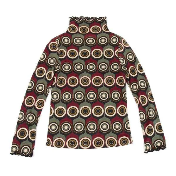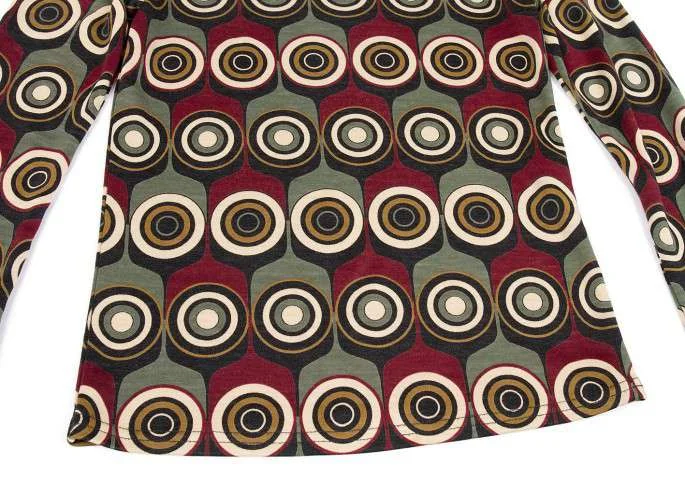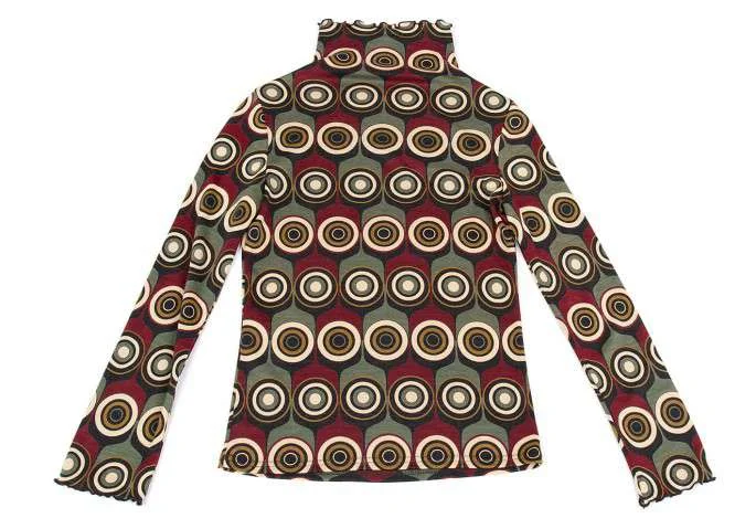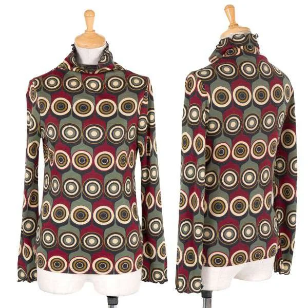 【SALE】ホコモモラJocomomola ウール混幾何学柄ハイネック長袖カットソー カーキ赤他40