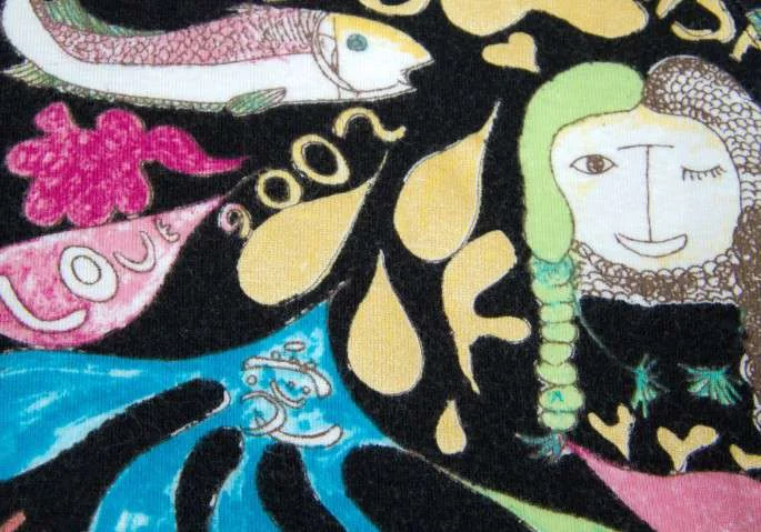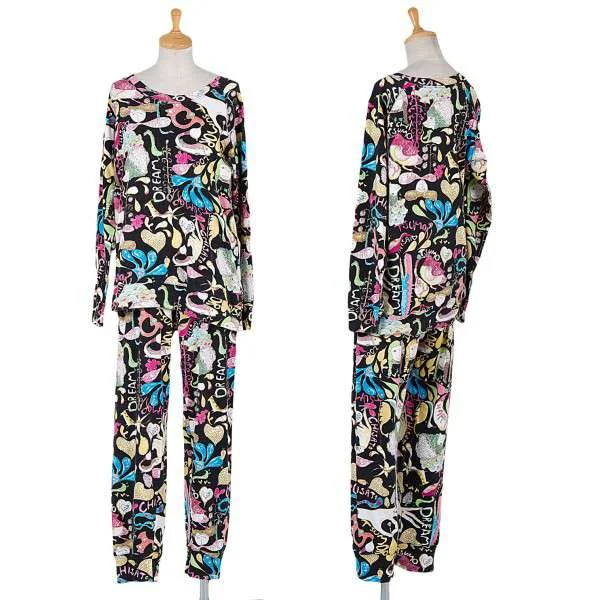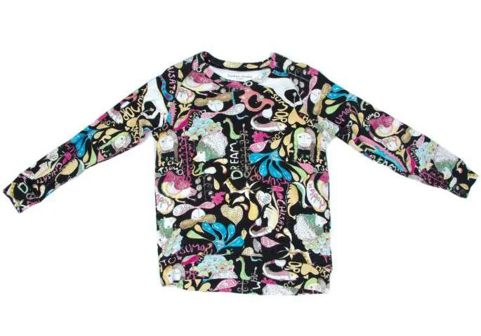 【600SALE】ツモリチサトTSUMORI CHISATO イラストデザイン長袖コットントップス 【返品不可】 黒マルチM