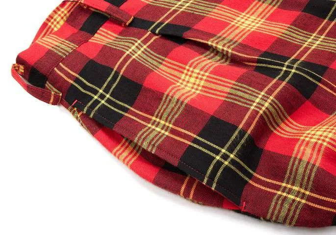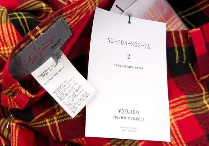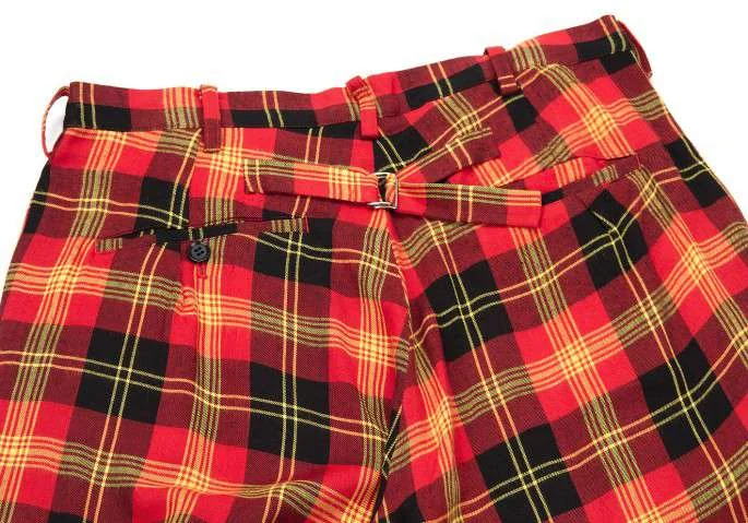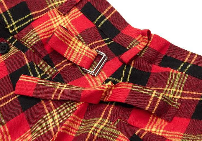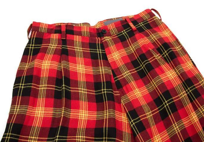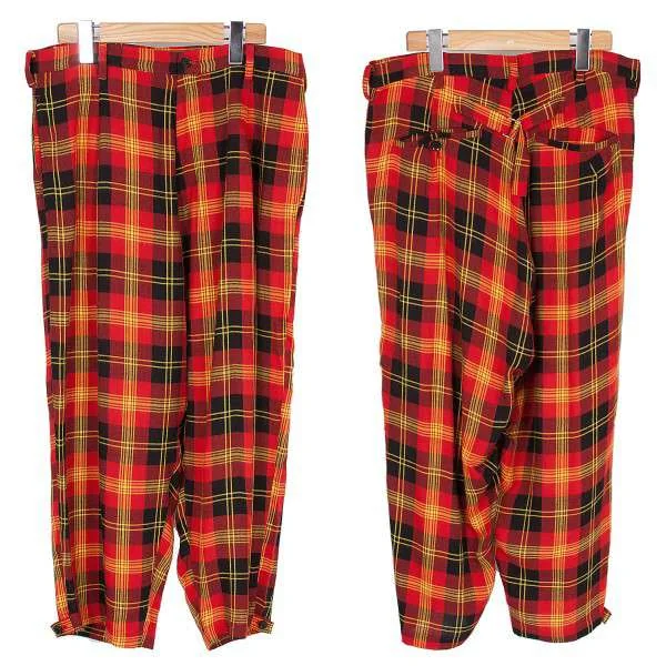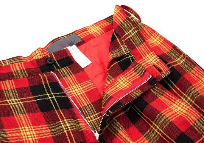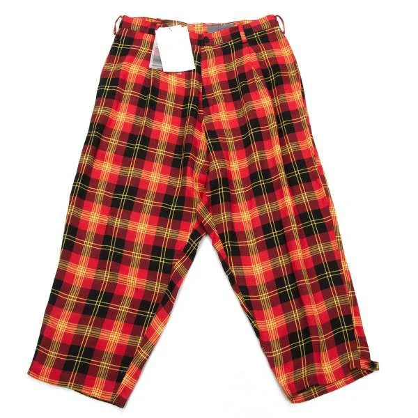 ヨウジヤマモト ノアールYohji Yamamoto NOIR レーヨンタータンチェックワイドサルエルパンツ 黒赤他2
