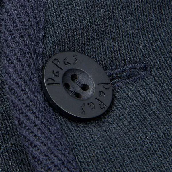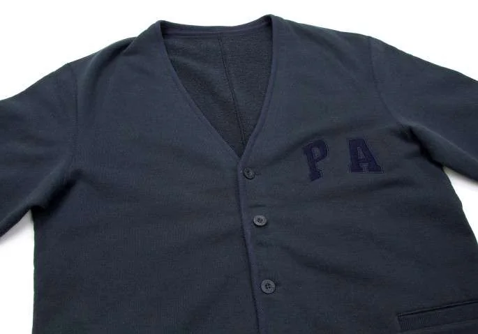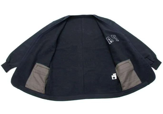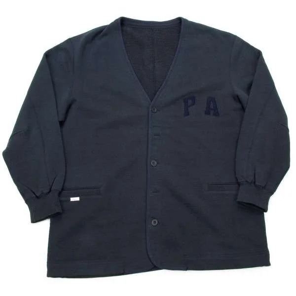 パパスPapas イニシャルワッペンパイピングスウェットカーディガン 紺L