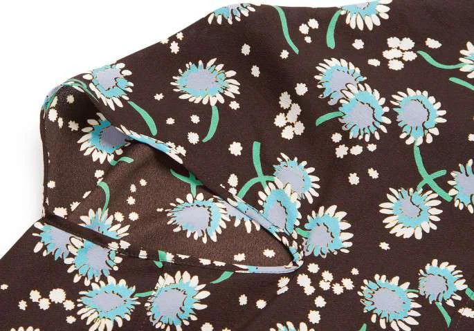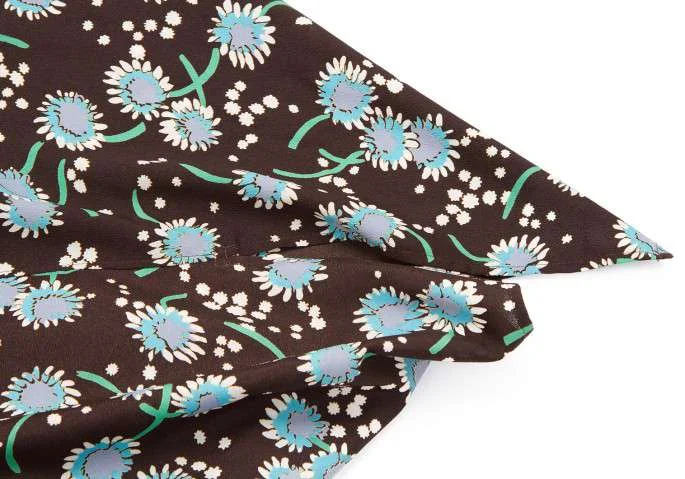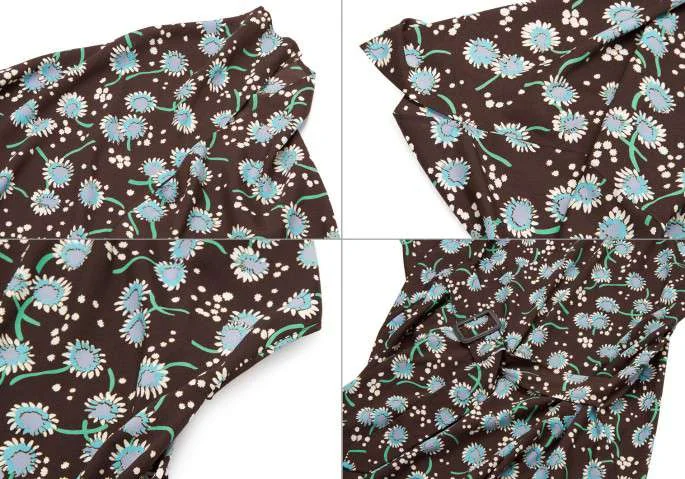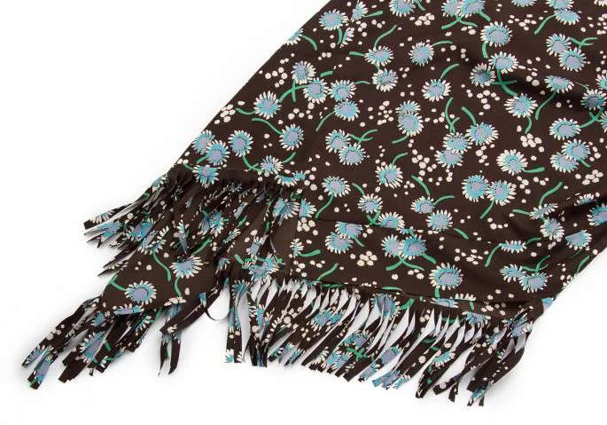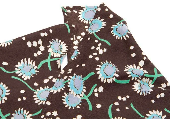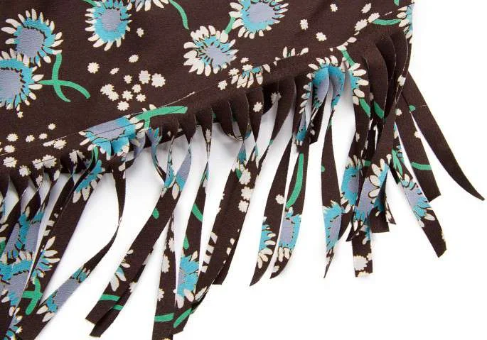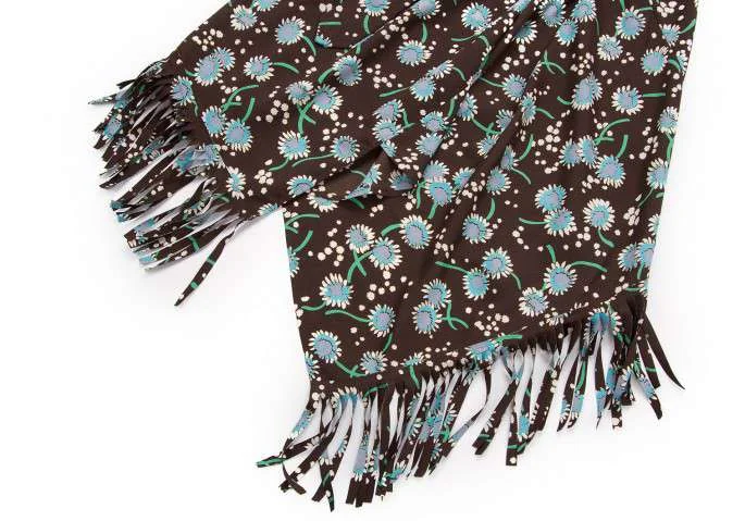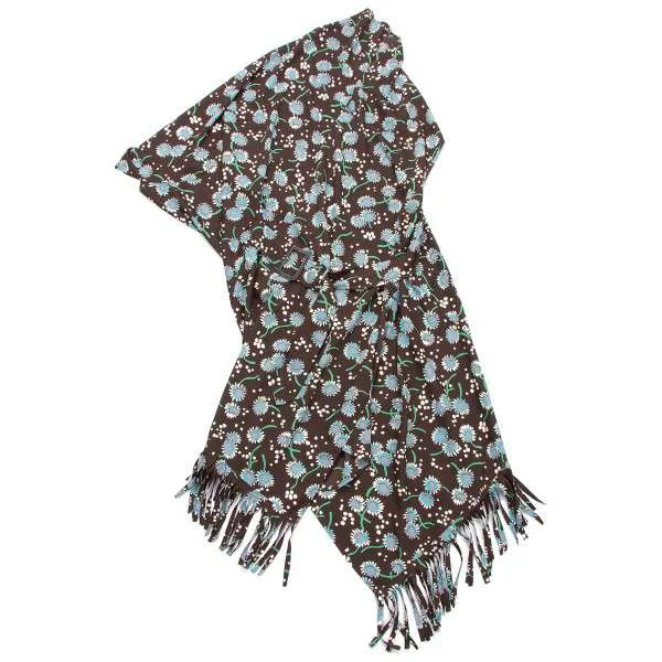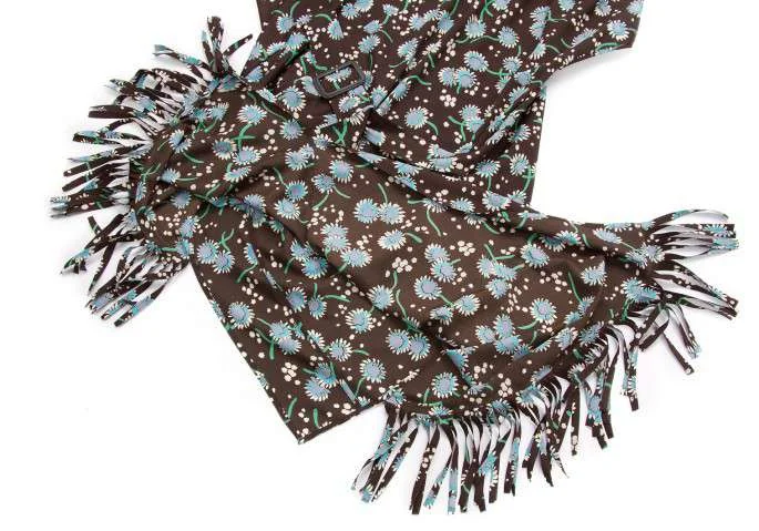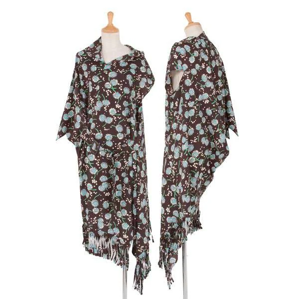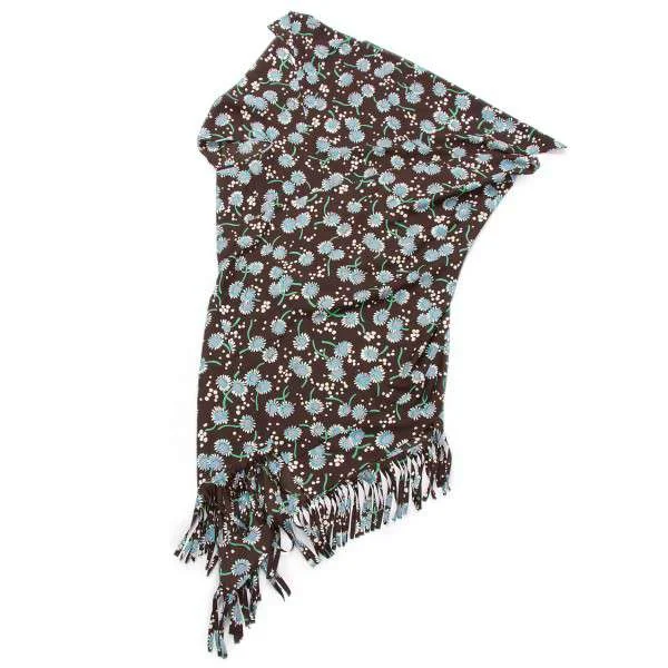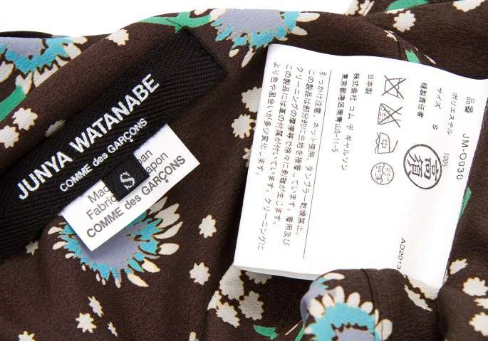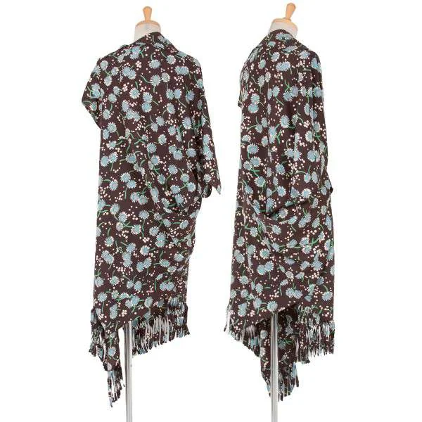 ジュンヤワタナベ コムデギャルソンJUNYA WATANABE COMME des GARCONS 花柄裾フリンジアシンメトリーワンピース 茶ブルーオフS