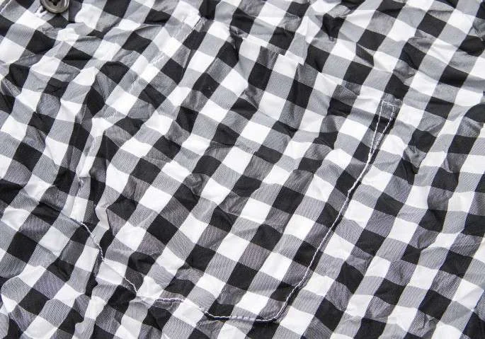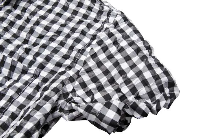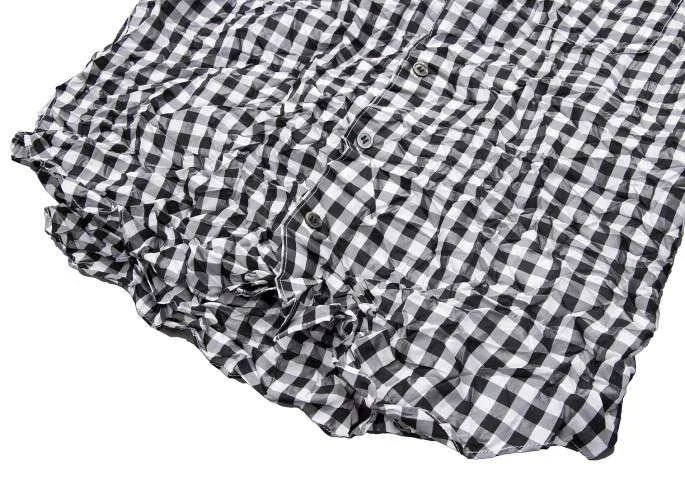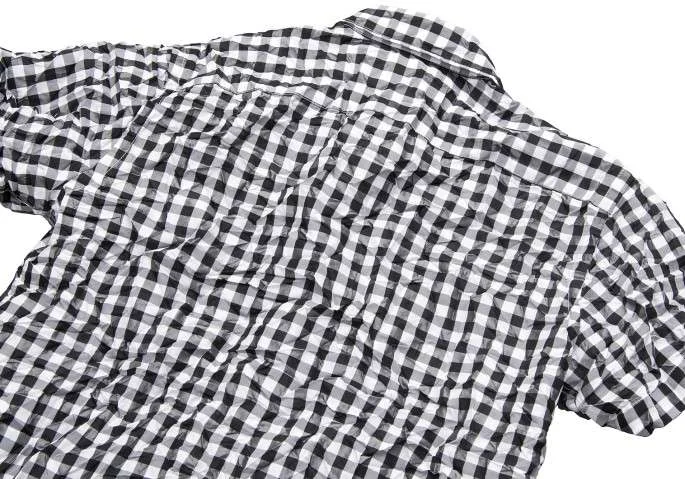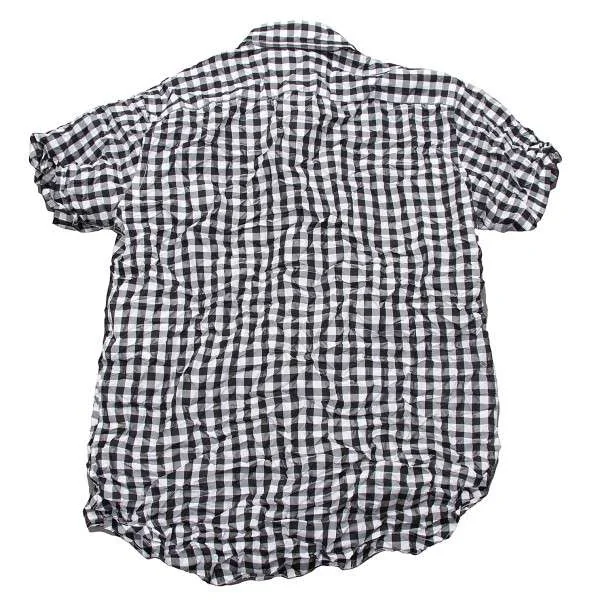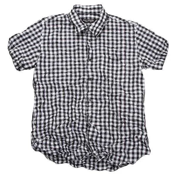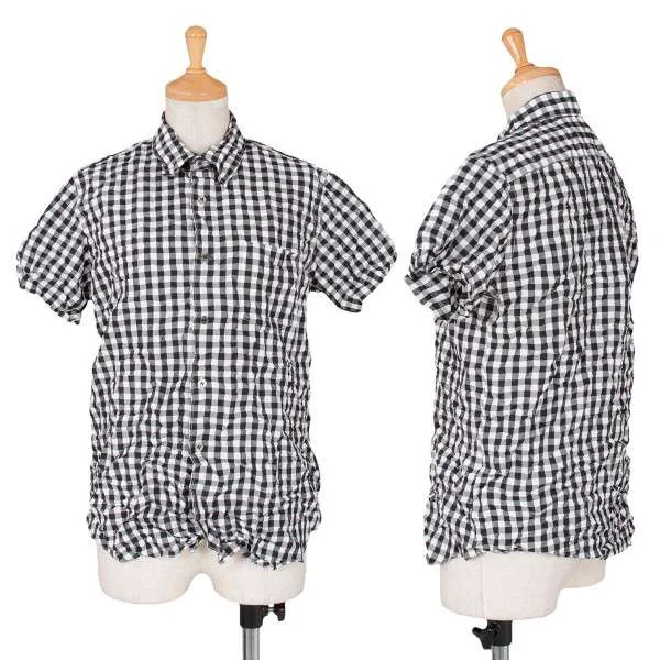 ジュンヤワタナベ コムデギャルソンJUNYA WATANABE COMME des GARCONS ギンガムチェックしわ加工半袖ブラウス 黒白M位