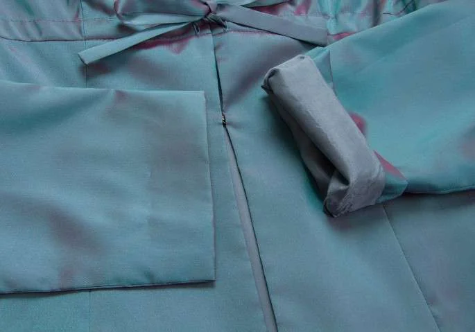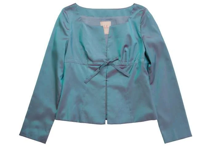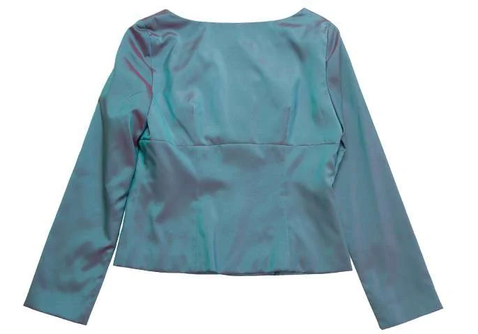 シビラSybilla ノーカラー前紐玉虫長袖ポリジャケット 玉虫ブルーM