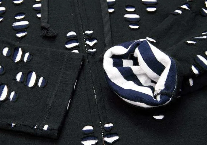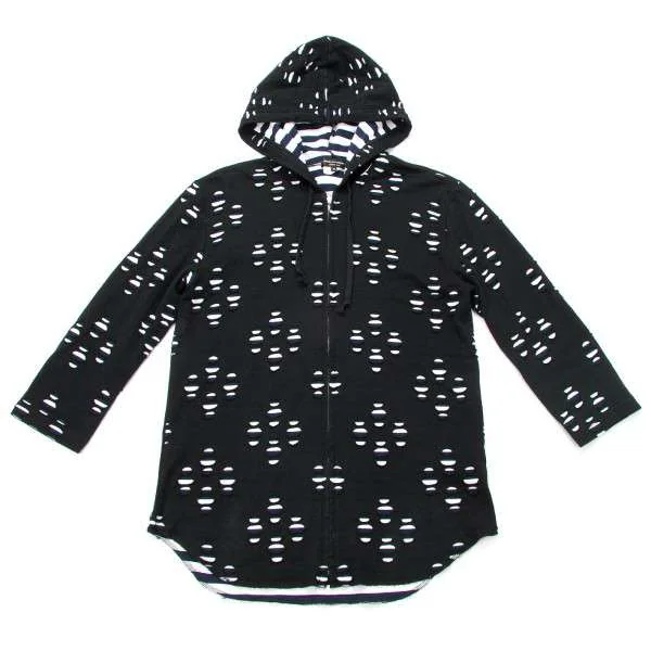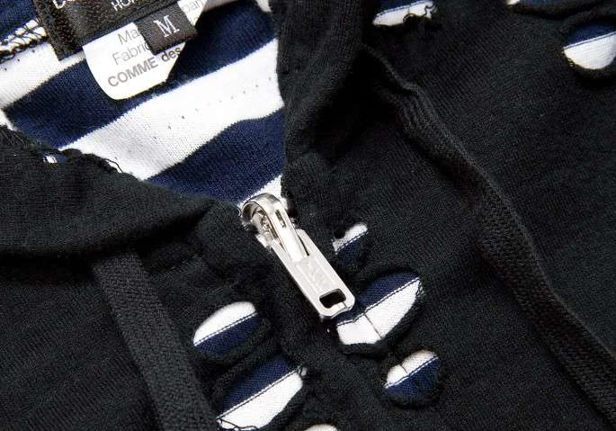 コムデギャルソンオムプリュスCOMME des GARCONS HOMME PLUS ブロークンデザインレイヤードボーダーパーカー 黒紺白M