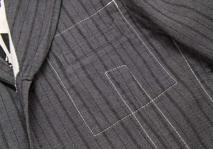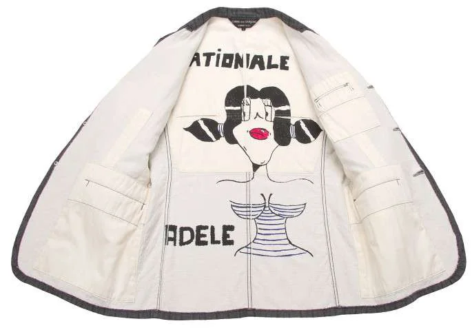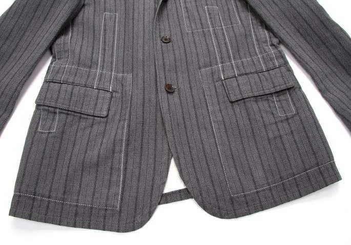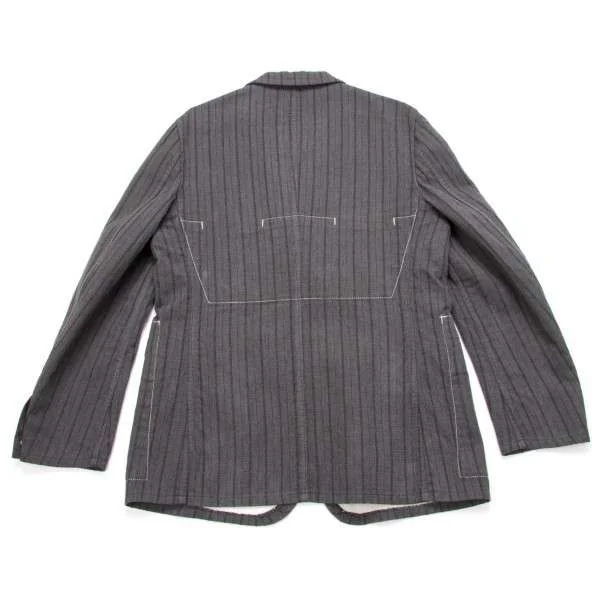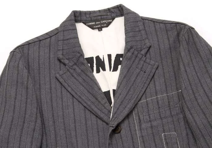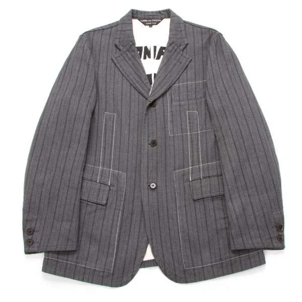 コムデギャルソン オムプリュスCOMME des GARCONS HOMME PLUS NATIONAE ADEE裏地プリントストライプジャケット チャコールグレー他L