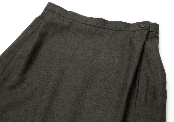 【SALE】イッセイミヤケ ペルマネンテISSEY MIYAKE PERMANENTE ウールタック台形スカート 杢カーキ2