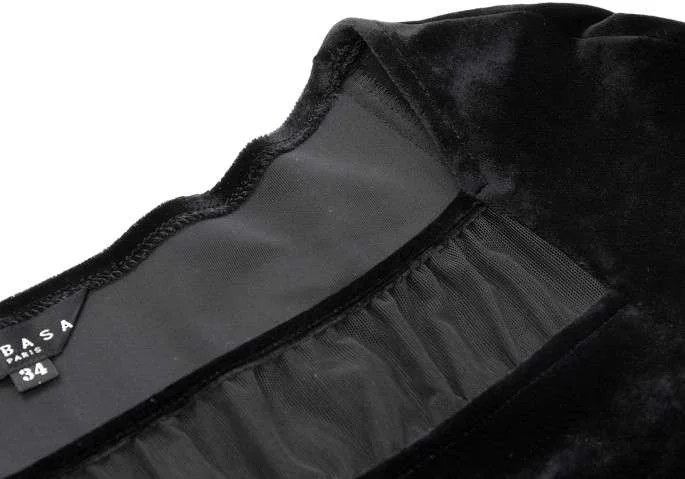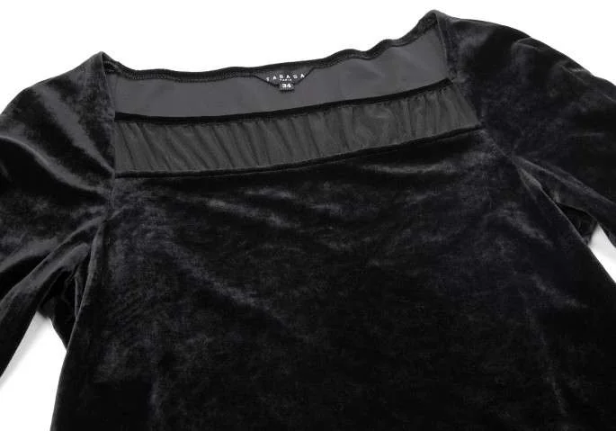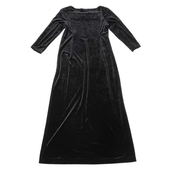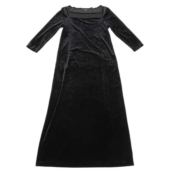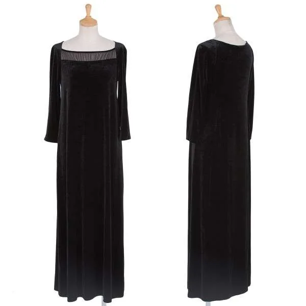 【SALE】タバサTABASA デコルテメッシュストレッチベロアロングワンピース 黒34