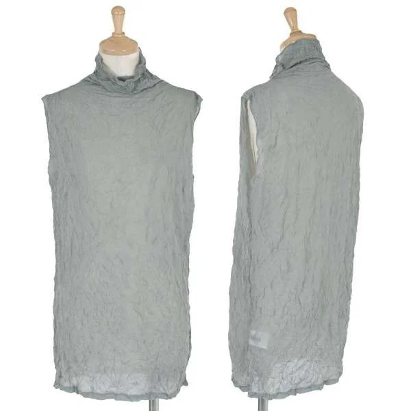 【SALE】イッセイミヤケISSEY MIYAKEシワ加工ポリエステルタートルネックノースリーブカットソー グレーM