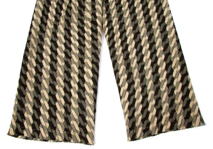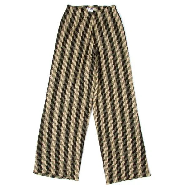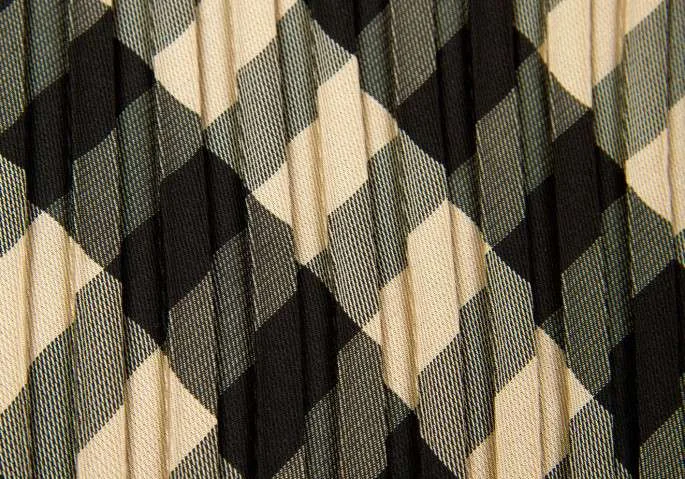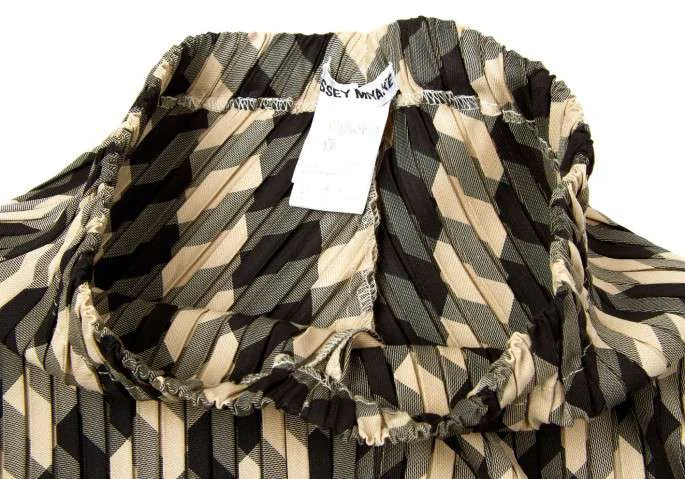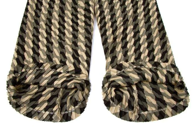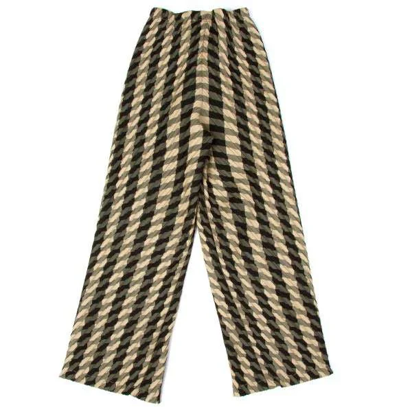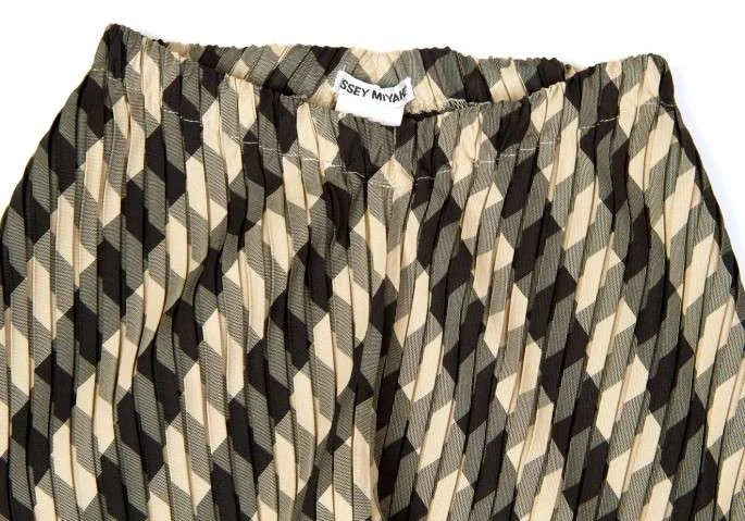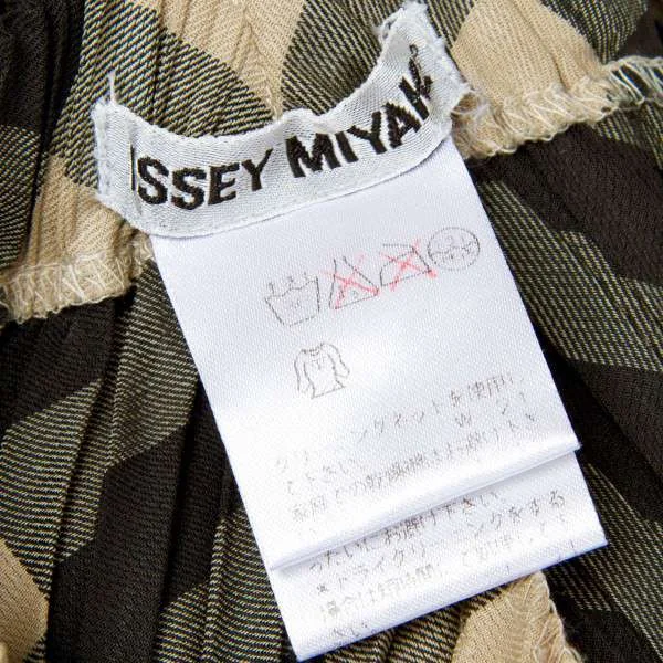 イッセイミヤケISSEY MIYAKEバイアスチェックプリーツイージーワイドパンツ 黒ベージュM