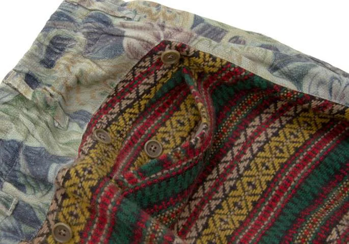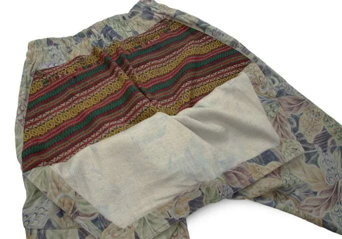 ヨウジヤマモトプールオムYohji Yamamoto POUR HOMME 花柄レイヤードデザインパンツ グリーングレー赤他3