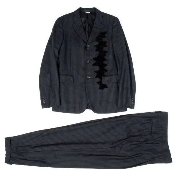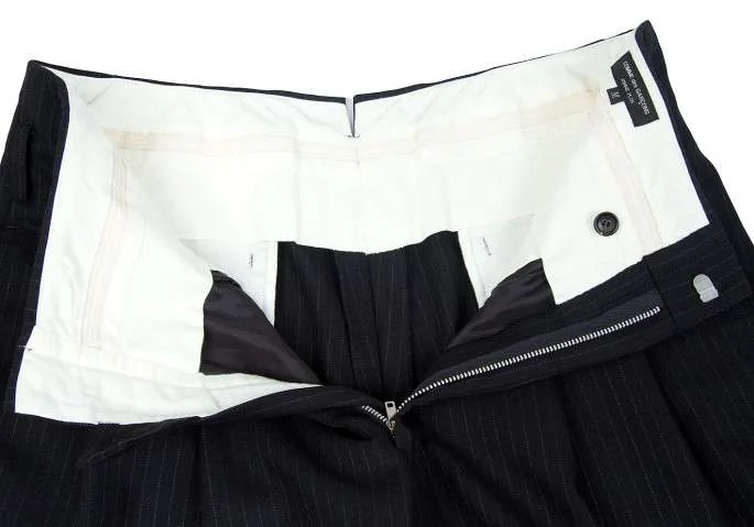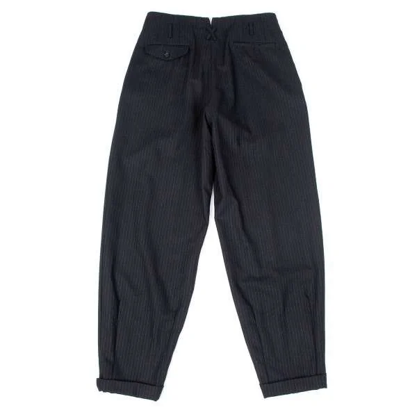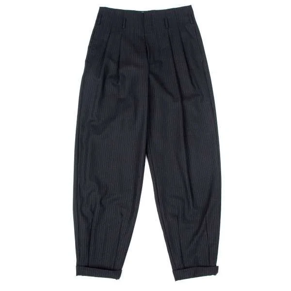 コムデギャルソンオムプリュスCOMME des GARCONS HOMME PLUS ストライプウールワイドタックパンツ 黒グレーM