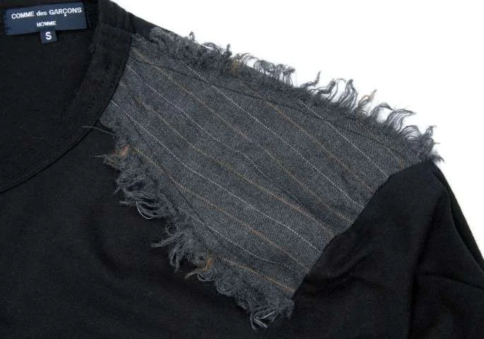 【SALE】コムデギャルソン オムCOMME des GARCONS HOMME 製品染めショルダーパッチデザインカットソー 黒グレーS