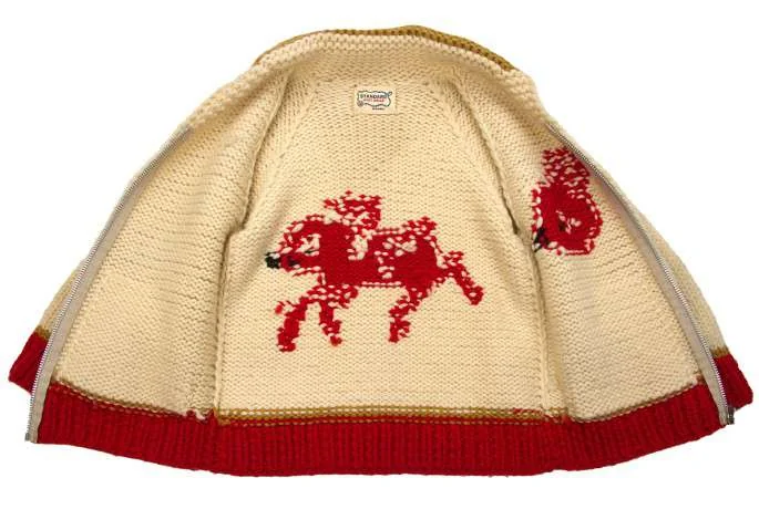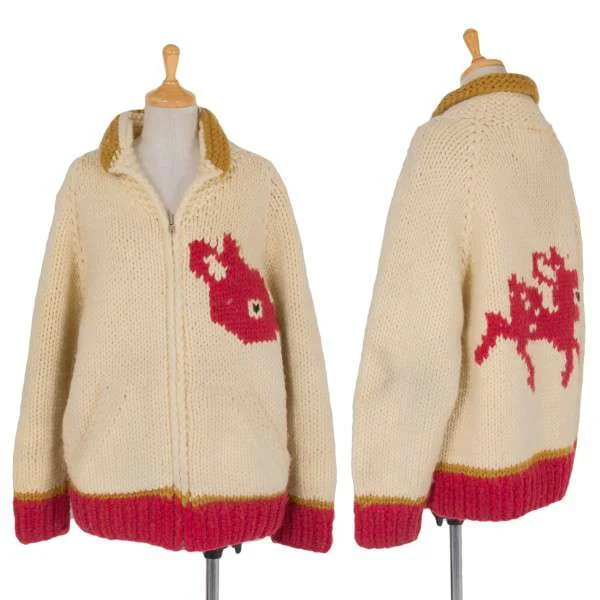ハリウッドランチマーケットHRM バンビ柄カウチンニット ベージュ赤他M位