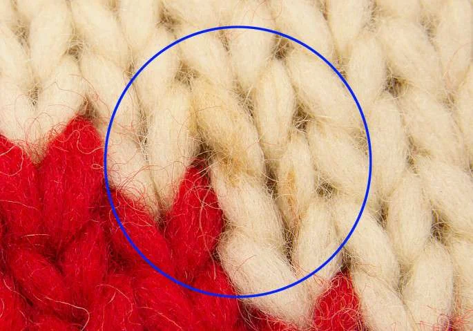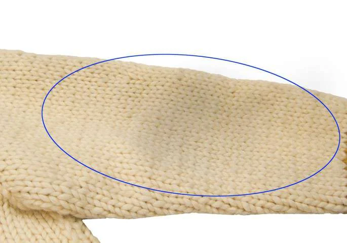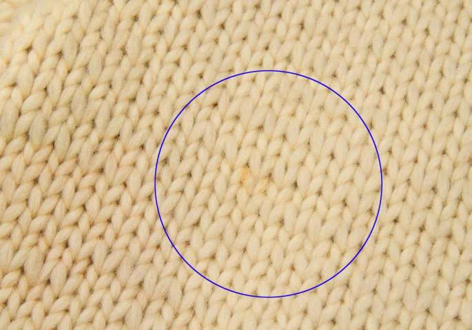 前身頃に薄シミあり。ブランドタグ、袖に汚れあり(写真参照)。
