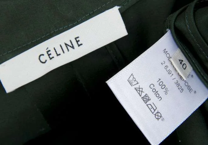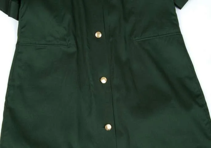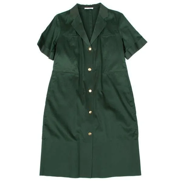 【SALE】セリーヌCELINE 金ボタンコットン半袖デザインワンピース 緑40