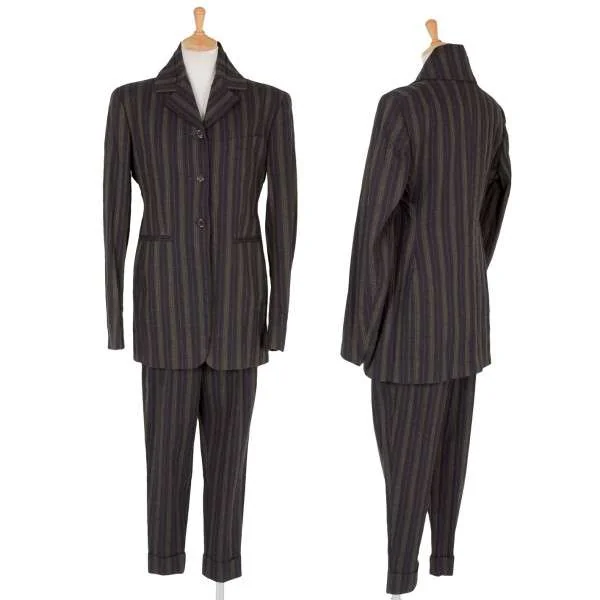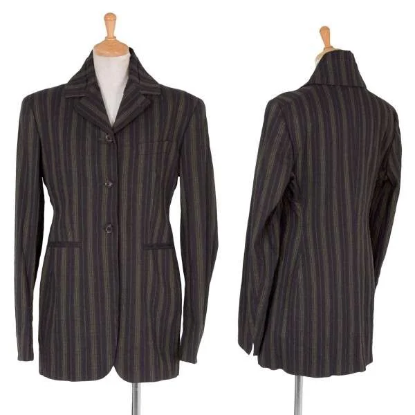 【最終値下げ】ロメオジリROMEO GIGLI マルチストライプ3Bジャケット 茶黄他M位