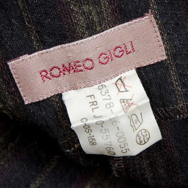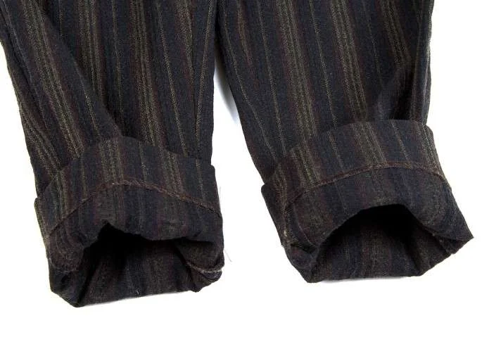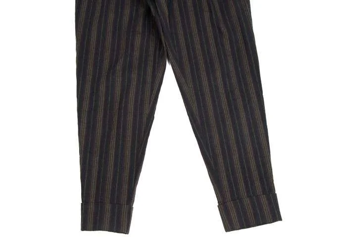 ロメオジリROMEO GIGLI マルチストライプ1タックハイウエストテーパードパンツ 茶黄他M位