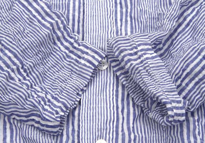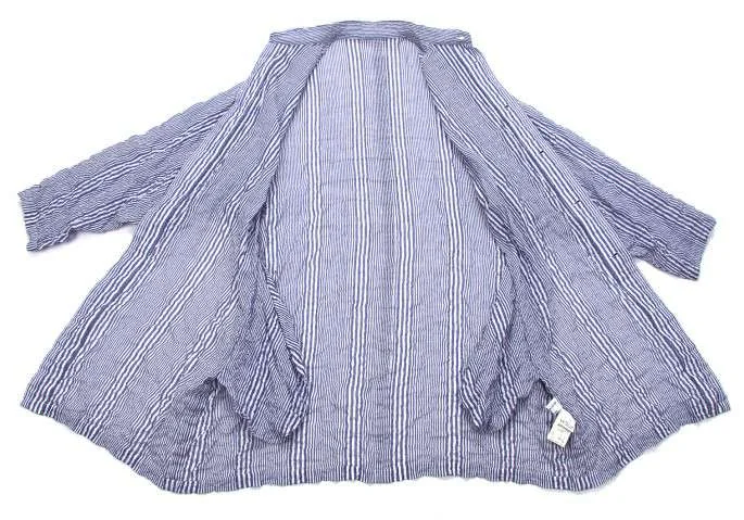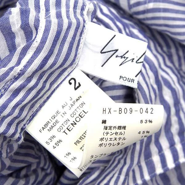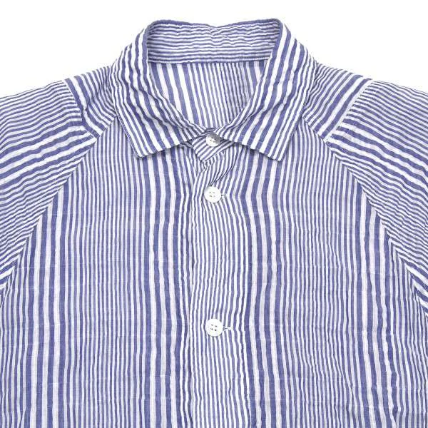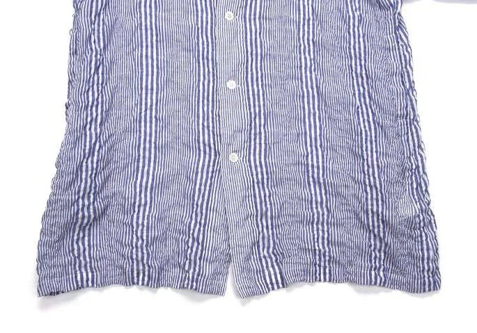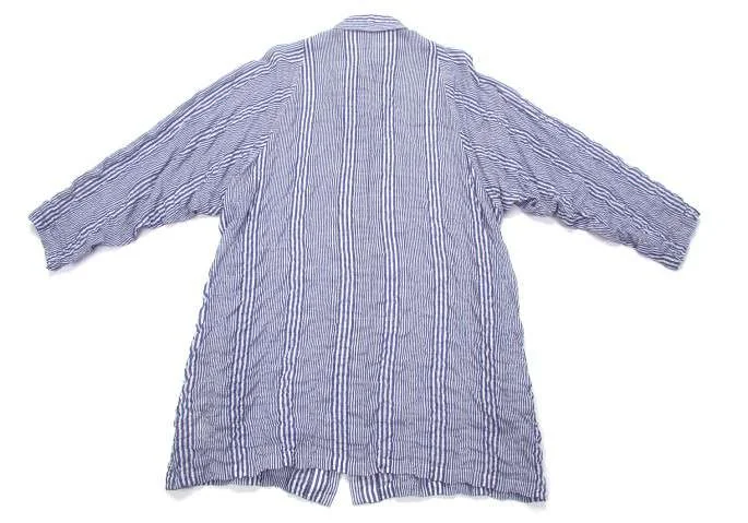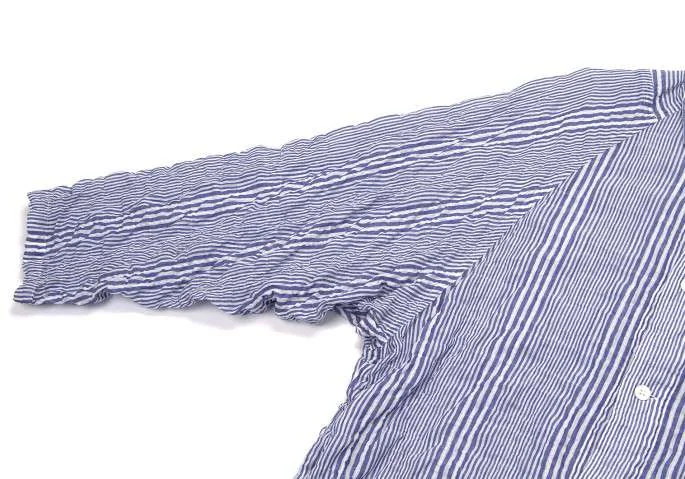 ヨウジヤマモト プールオムYohji Yamamoto POUR HOMME ストライプワッシャー加工ロングシャツ 青白2