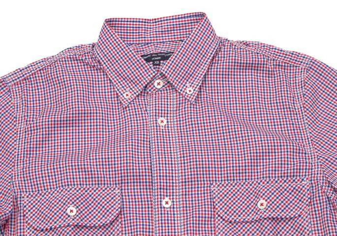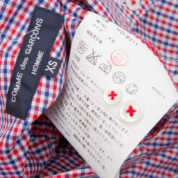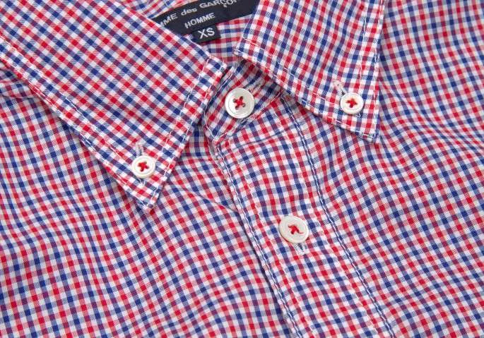 新品!【SALE】新品!コムデギャルソン オムCOMME des GARCONS HOMME ボタンダウンギンガムチェック半袖シャツ 赤白紺XS