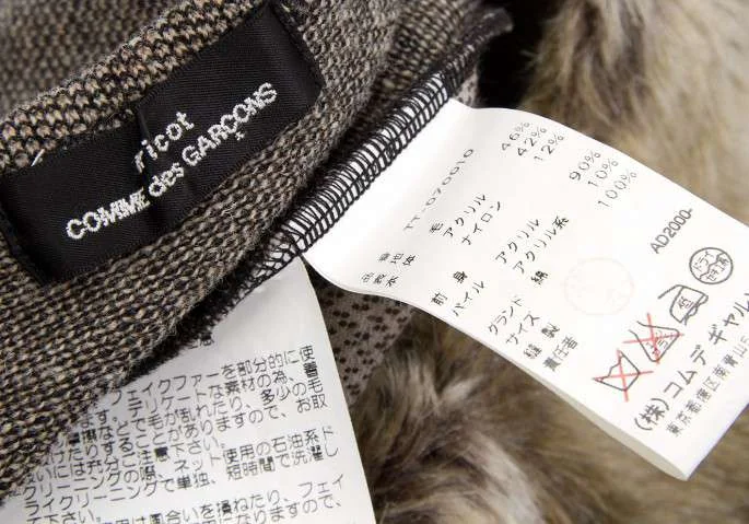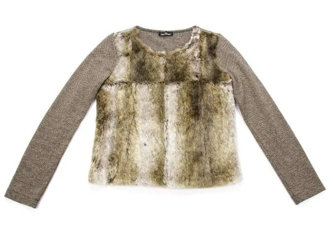 【SALE】トリコ コムデギャルソンtricot COMME des GARCONS フェイクファー切替長袖トップス 茶ベージュ系M位