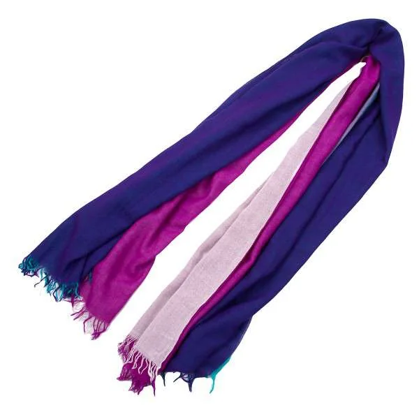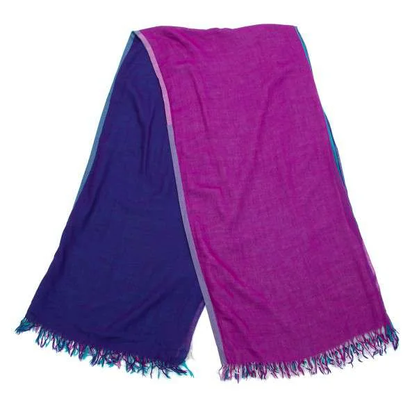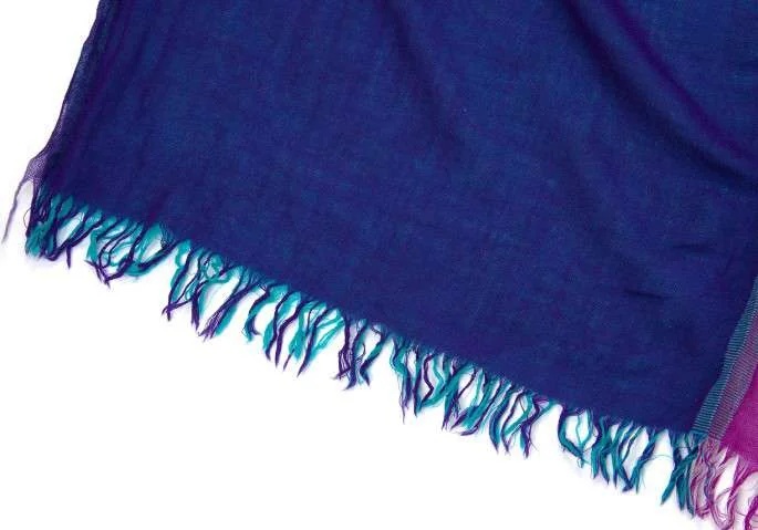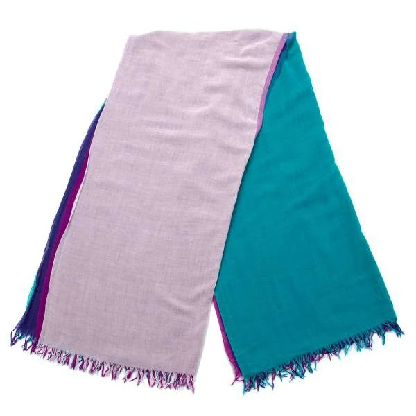 イッセイミヤケISSEY MIYAKE 4色使いデザインフリンジストール 青紫緑他