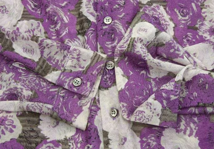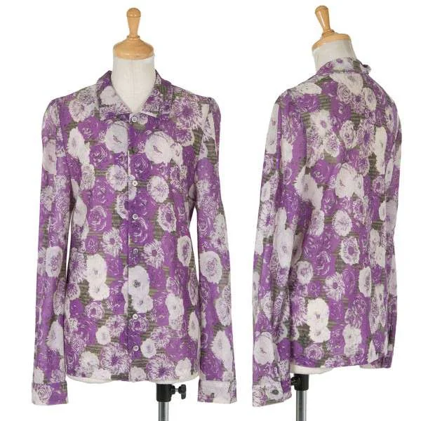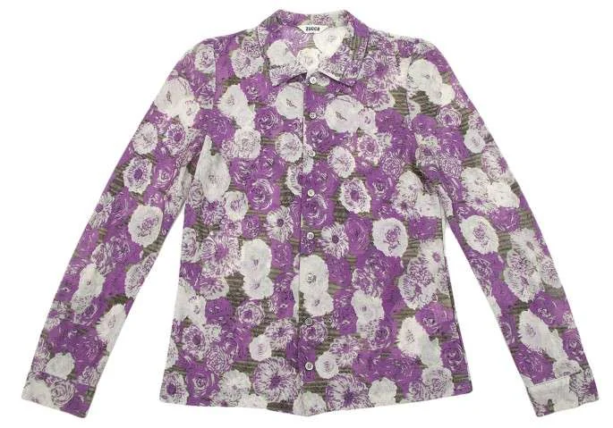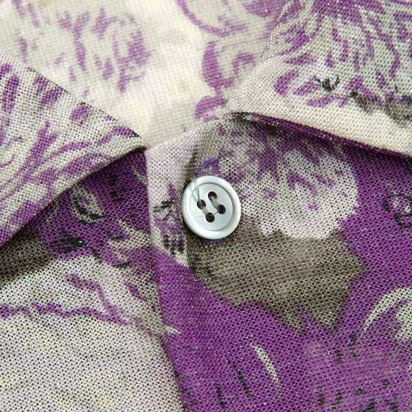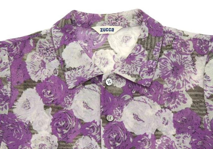 【SALE】ズッカzucca レーヨンナイロンラメ花柄メッシュシャツ グレー紫他M