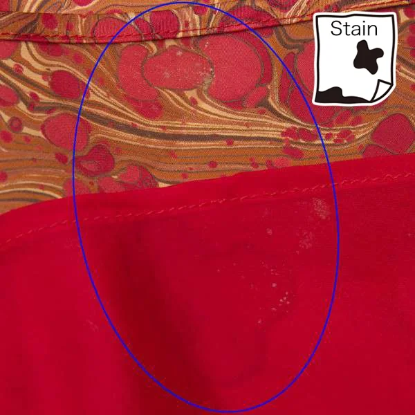 裾裏、裏地に薄汚れ、薄シミあり(写真参照)。その他に目立ったシミ、汚れ、ほつれ等なくいい状態です。クリーニング済み