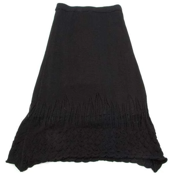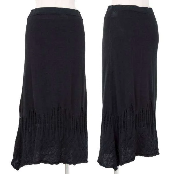 【SALE】イッセイミヤケ ハートISSEY MIYAKE HaaT 裾透かし柄綿ニットロングスカート 黒2