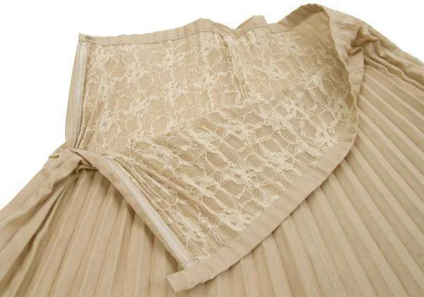 【SALE】イッセイミヤケ ホワイトレーベルISSEY MIYAKE WHITELABEL 花柄レースレイヤードポリエステルプリーツスカート ベージュ3