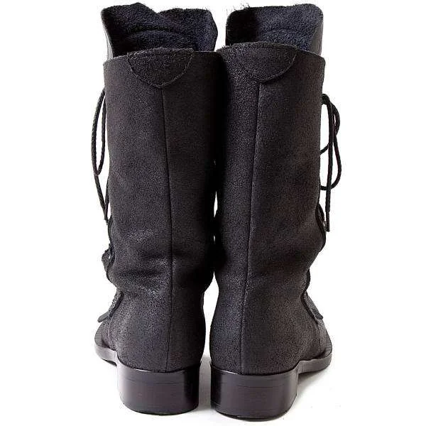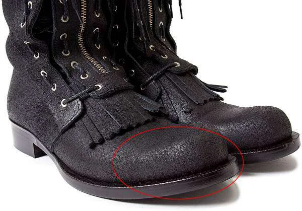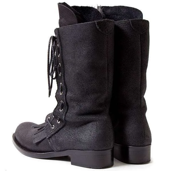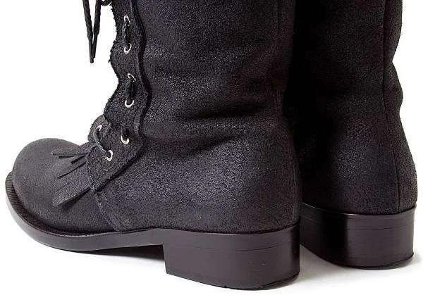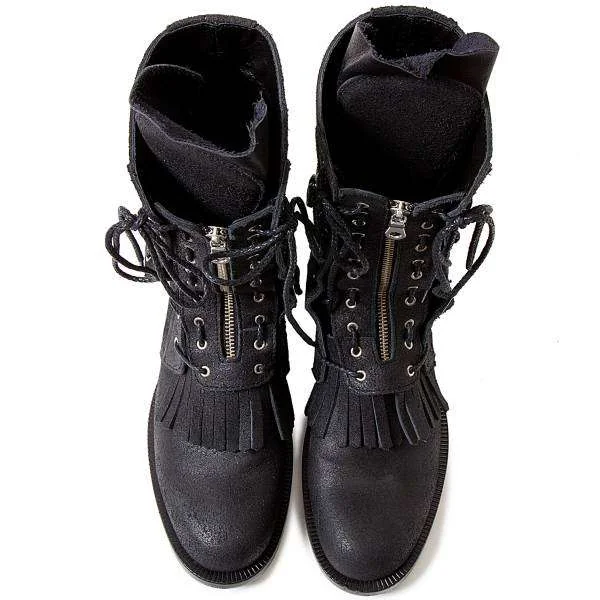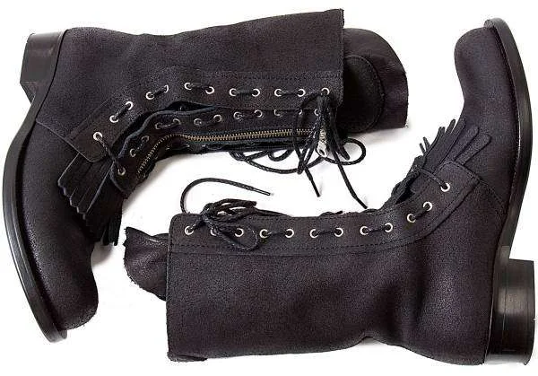 リミフゥLIMI feu 顔料キャンバスフリンジレースアップレザーブーツLL 黒LL(25位)