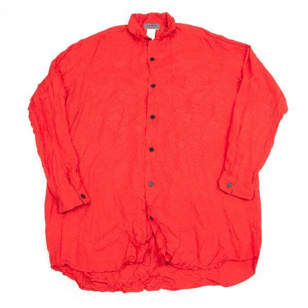 ヨウジヤマモトプールオムYohji Yamamoto pour homme ワッシャーシルクロングシャツ 赤3