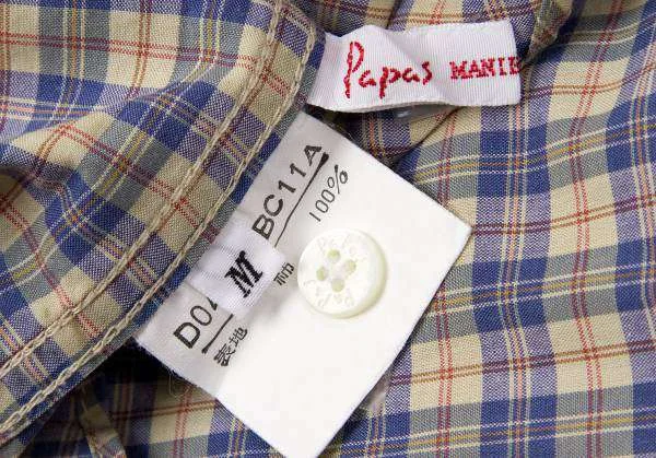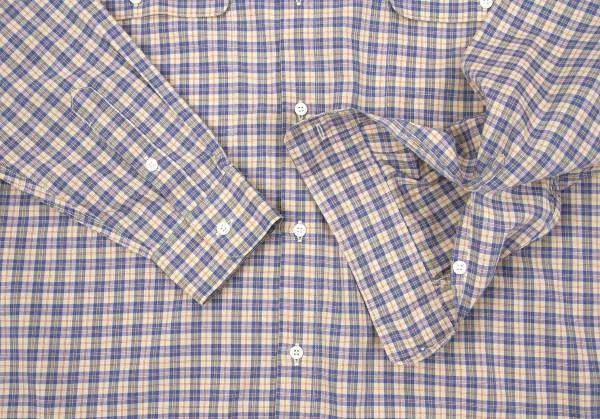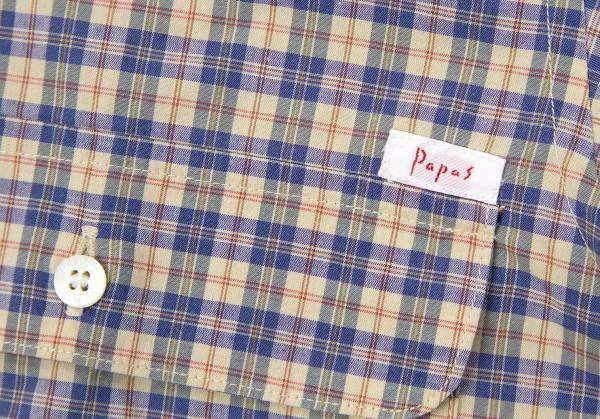 【SALE】パパスPapas 胸ポケットデザインタータンチェック長袖シャツ 青黄赤M