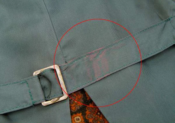 襟元、後身頃ベルト部分に変色あり(写真参照)。その他に目立ったシミ、汚れ、ほつれ等なくいい状態です。クリーニング済み