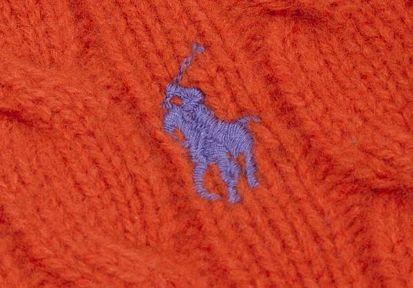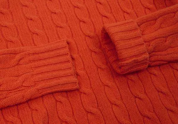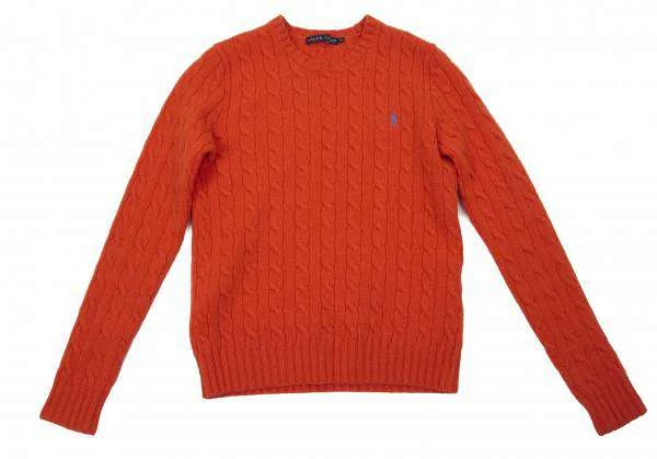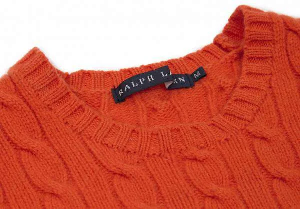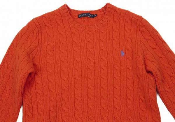 ラルフローレンRALPH LAUREN カシミヤ混ウールケーブルニット オレンジ青M