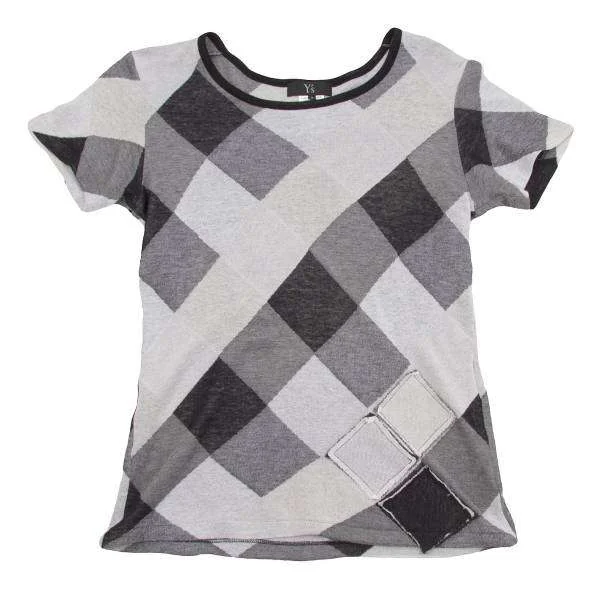 ワイズY’s ブロックチェックデザインニットセットアップスーツ 黒グレー2