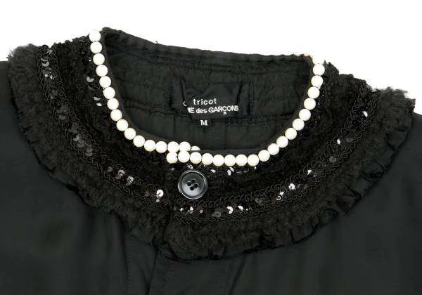 【SALE】トリコ コムデギャルソンtricot COMME des GARCONSパールスパンコール装飾キュプラシャツジャケット 黒M