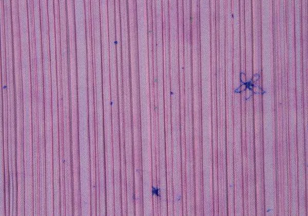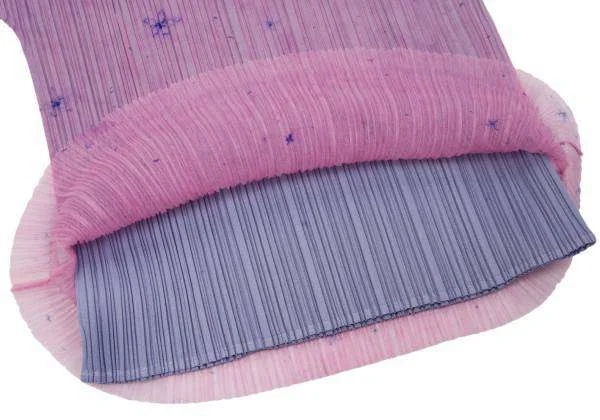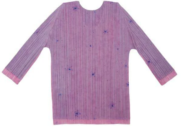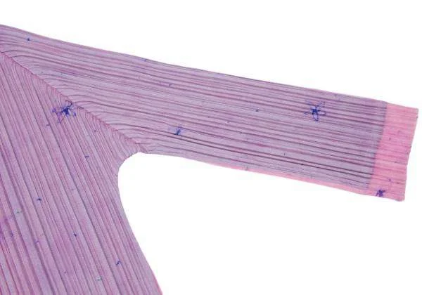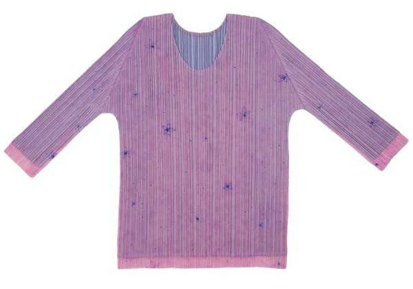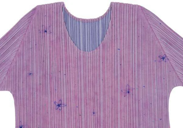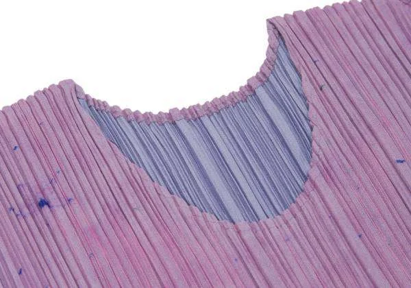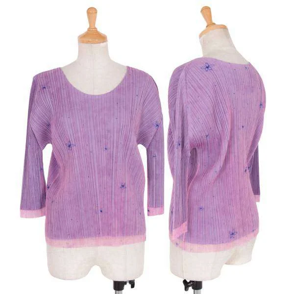 プリーツプリーズPLEATS PLEASE フラワープリントメッシュレイヤード七分袖カットソー 紫ブルーグレー3
