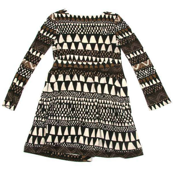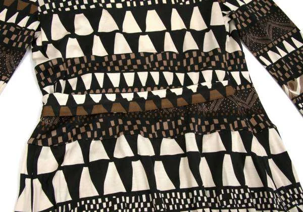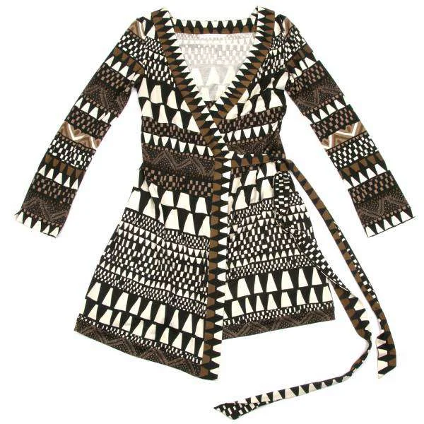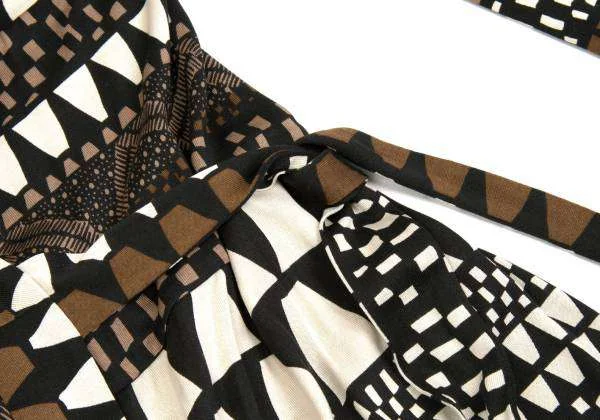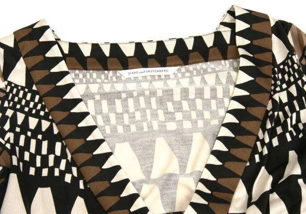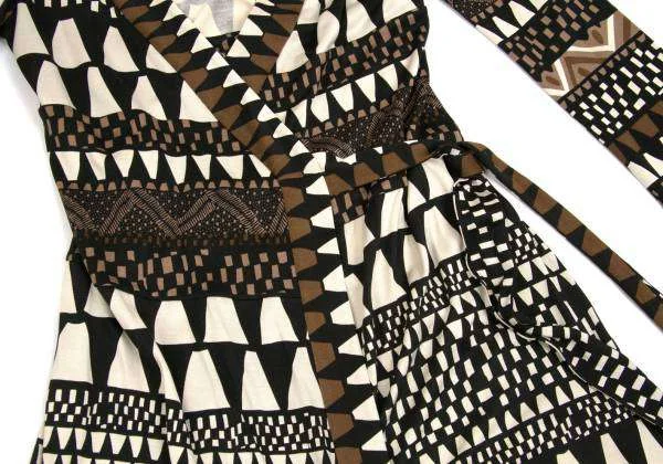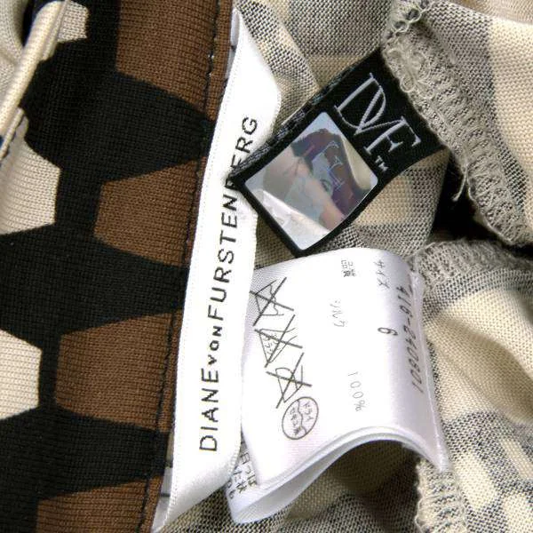 ダイアンフォンファステンバーグ DIANE VON FURSTENBERG ウエスト切替シルクプリント巻きワンピース ベージュ黒他6