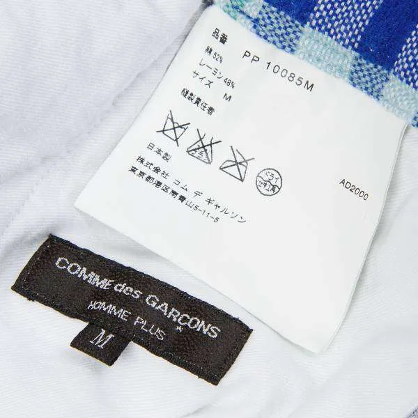 コムデギャルソン オムプリュスCOMME des GARCONS HOMME PLUS 製品洗いコットンレーヨンチェックハーフパンツ 青他M