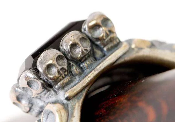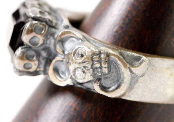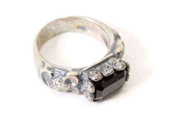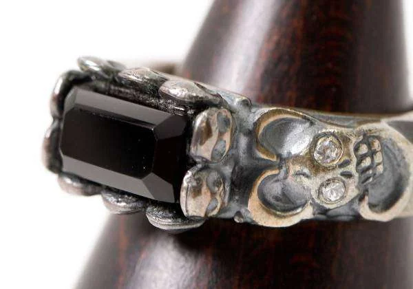 ジャンポールゴルチエJean Paul GAULTIER スカル台座ブラックストーンリング シルバー黒18号