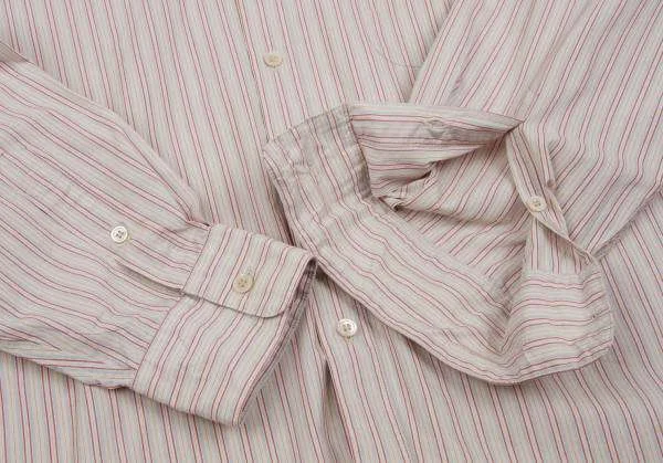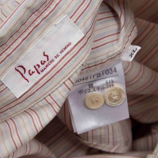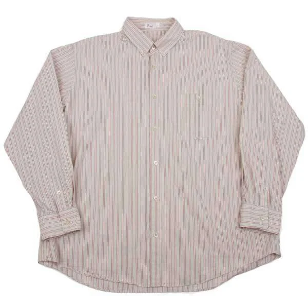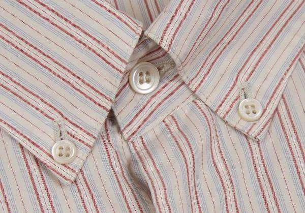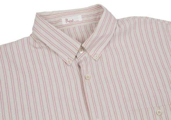 パパスPapas ボタンダウンコットンポリマルチストライプシャツ レンガ黄他XL