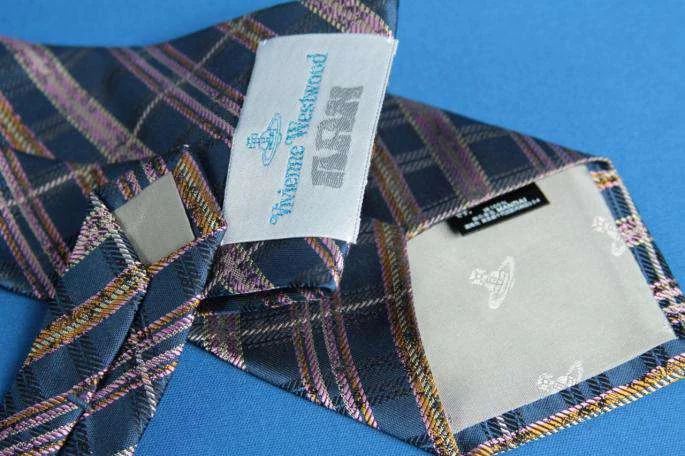 ヴィヴィアン ウエストウッド マンVivienne Westwood MANチェックシルクネクタイ 紺